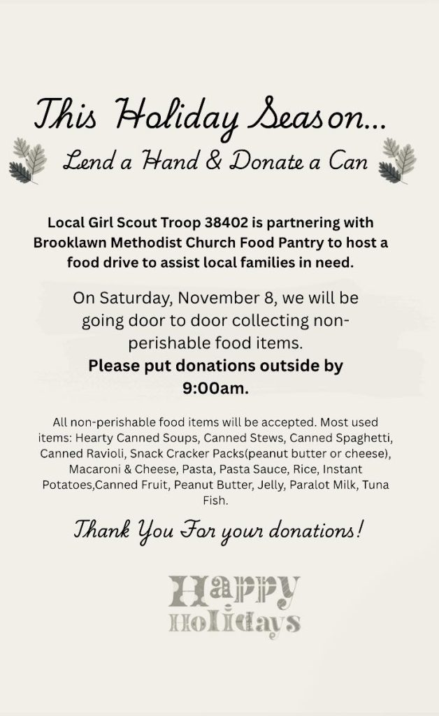 Lend a Hand & Donate a Can Non-perishable food donations may be dropped off at Borough hall during normal business hours from October 29 – October 7. Door to door collecting will be held on Saturday, October 8. Your donations are greatly appreciated. Screenshot